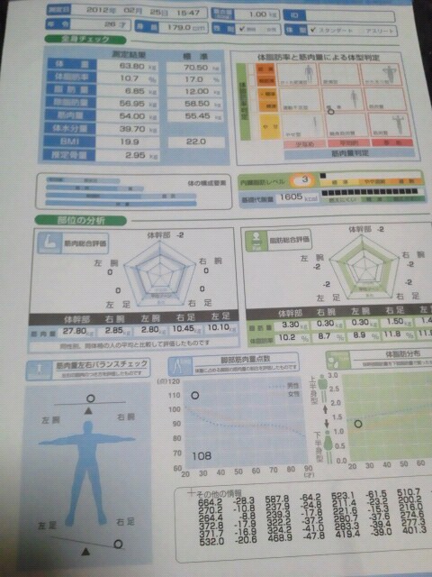 他にも腕、足の左右の筋肉のバランスとかも分かって、