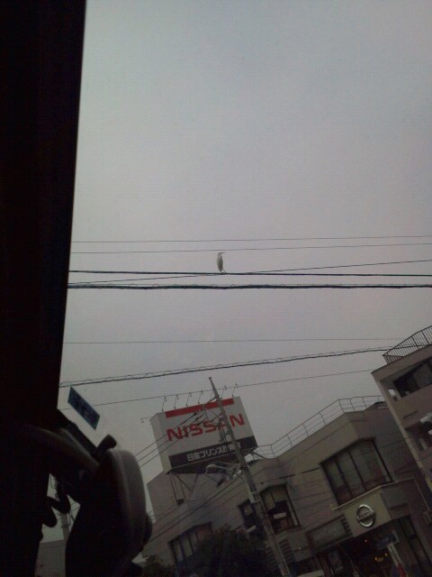 電線に止まるシロサギ(笑)