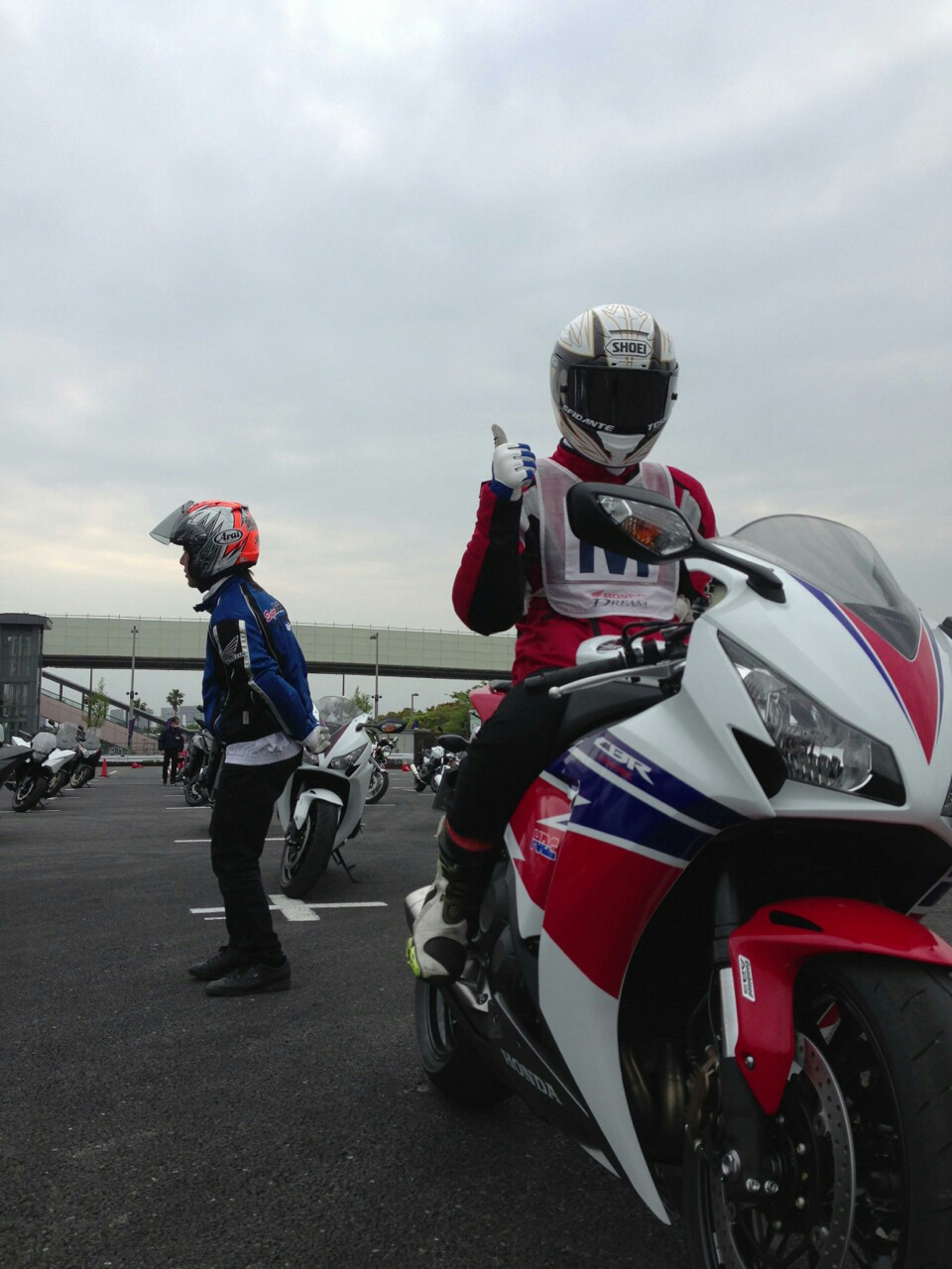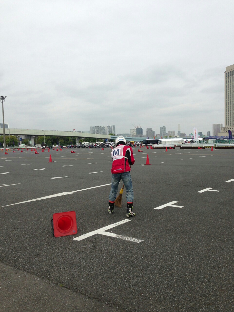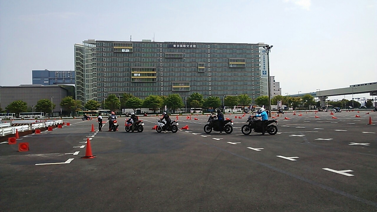 土曜日の朝一に試乗コースの設置をして、ビックバイクでコースの確認をしたり、試乗車のタイヤの皮剥きをしたり、朝からバイクに乗りまくり。