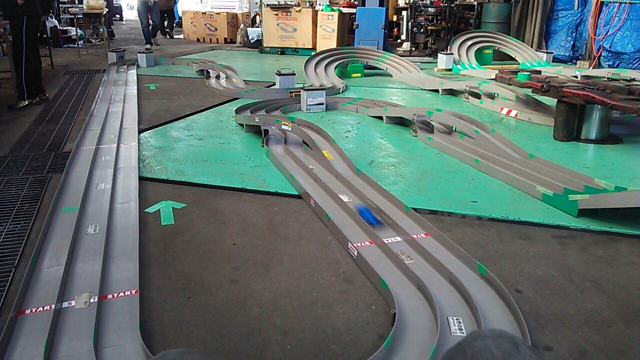 そんなミニ四駆ですがここ3年前位からサイブレイクしていまして、安野自動車さんでは子供たちにもミニ四駆の楽しさを知ってもらうために、月に1度コースを広げてレースをしています。
