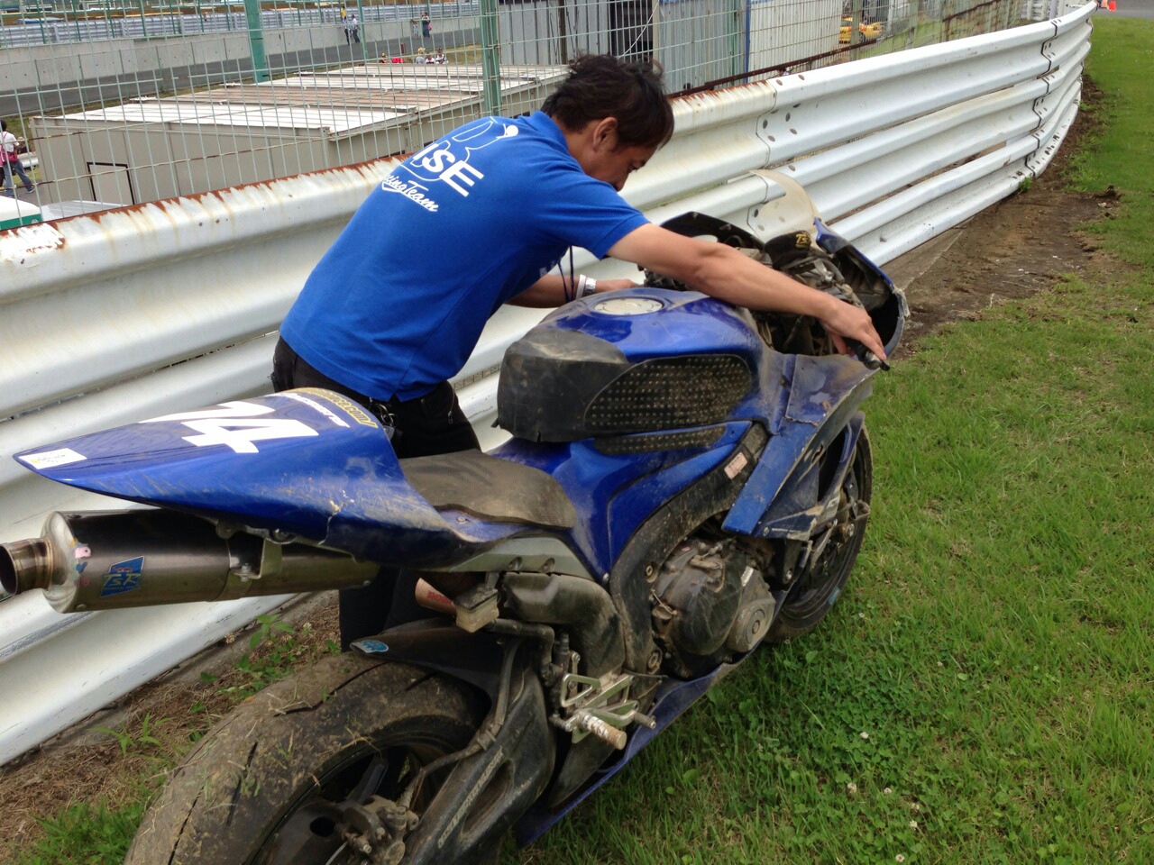そんな中予選1回目で転んだので、マシンの確認と決勝に向けたサスセットの確認です。