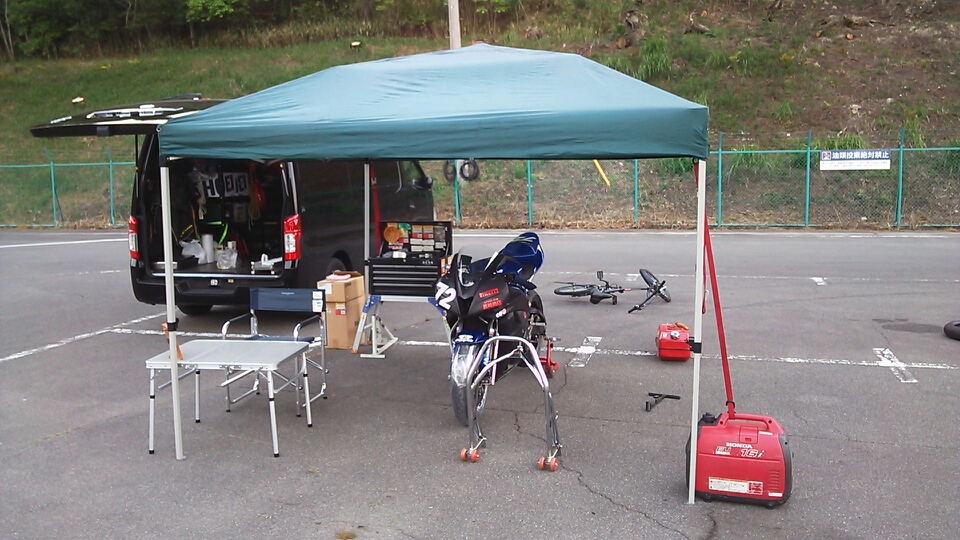 先程海老名でレース仲間のとっきいさんと待ち合わせして、テントをお借りしました。