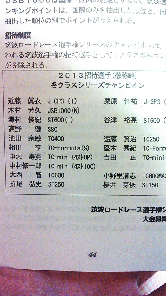 この間筑波サーキットから今年のレース申し込み用紙が送られてきました!!