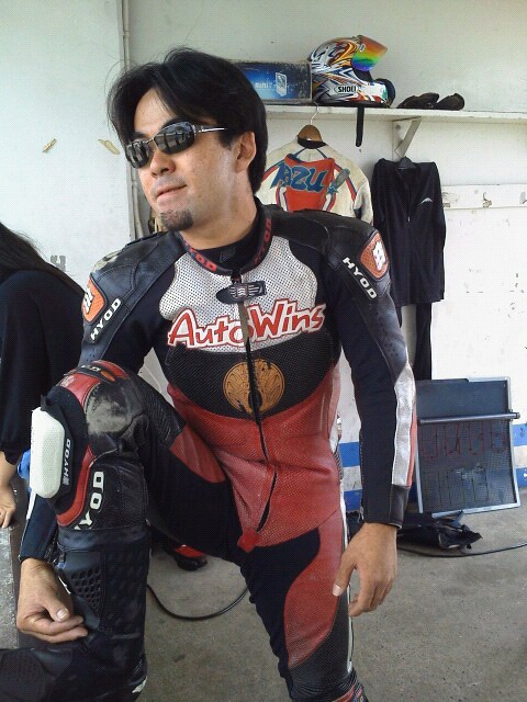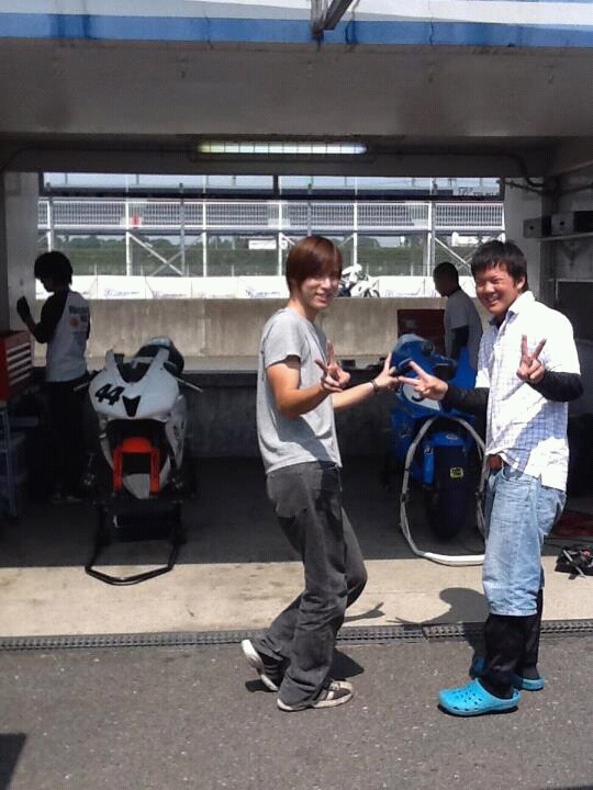 レースウィークだけあって参戦ライダーはピリピリしてましたが、僕はこんな感じ、隣は現役高校生の谷津君!
