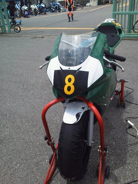 一番前からスタートして、選手権ライダーの青木さんについていき、身体の感覚やスピード感を取り戻し、ベストの一秒落ちまで出ましたが、なんか無理してる感じで、もっと簡単かつ楽にベスト付近で走れるようなサスセットを見つけないといけないと思いました。