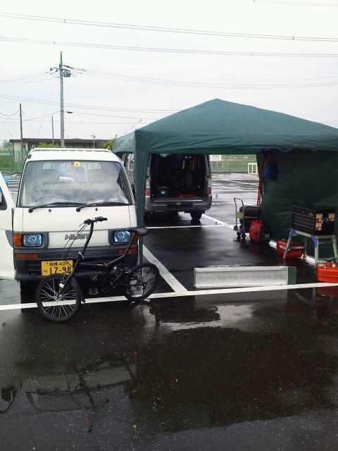 木曜日の夕方入りして、メカの高橋さんとテントなどの設置。